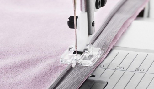 2. Излишек длины молнии должен быть в нижней части застежки-молнии. Включите прозрачную лапку для потайной молнии