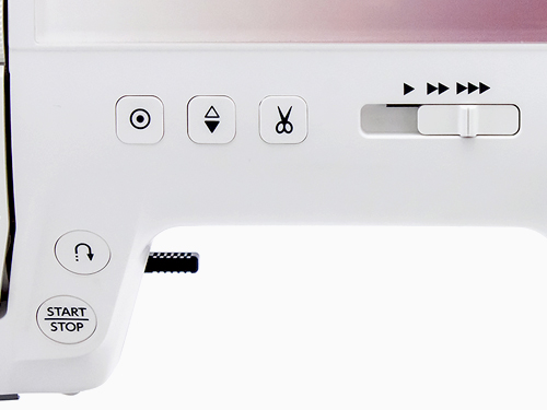Вы непременно оцените функцию шитья без педали, с помощью которой управление осуществляется лишь одним нажатием на соответствующую кнопку, нет необходимости использовать педаль. А регулировка скорости поможет лучше контролировать процесс шитья в зависимости от сложности работы. Увеличивайте ее при шитье длинных прямых строчек или снижайте при прохождении сложных участков.